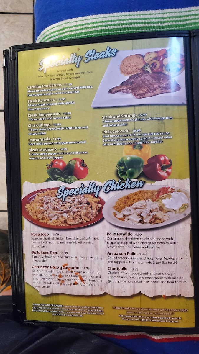 Our menu features a variety of tempting options. Starting with our Nachos, try the hearty Nachos Al Carbon, piled high with chargrilled steak, chicken, shrimp, and fresh toppings—perfect for sharing. For the meat lovers, our Specialty Steaks like the Steak Mexicano and Carne Asada will satisfy your cravings. Don't miss our flavorful Tacos, including the spicy Tacos Al Pastor. Each dish is crafted to ensure bold flavors and generous portions that make every meal worth your visit.